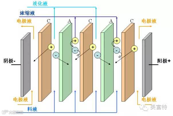在外加直流电场作用下,利用离子交换膜的透过性(即阳膜只允许阳离子透过,阴膜只允许阴离子透过),使水中的阴、阳离子作定向迁移,从而使溶液中的溶质与水分离,是一种物理化学过程。