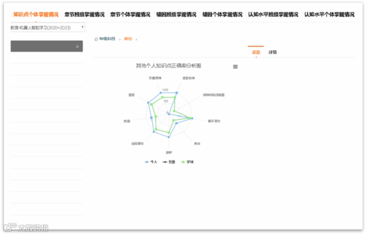 唛可丁学院是雷灵教育科技开发的人工智能教学平台。通过大数据分析和维度图展示,学院可以分析出学生的知识点掌握情况以及认知水平,帮助老师把握每位学生的学习情况,形成有针对性的查缺补漏。