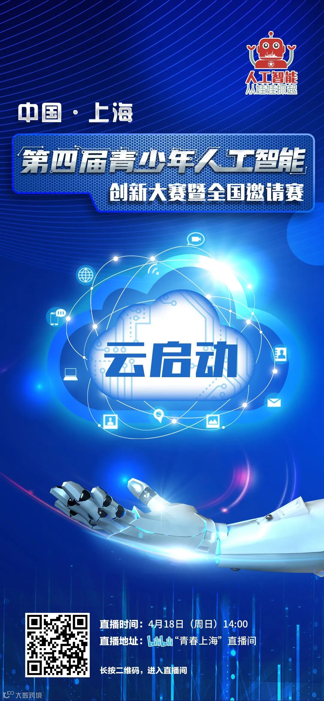 中国·上海第四届青少年人工智能创新大赛暨全国邀请赛启动仪式于4月18日(周日)14:00在bilibili“青春上海”直播间进行线上直播。AI青少年祝福、体验互动、AI SHOW……更多精彩内容,等你来解密!