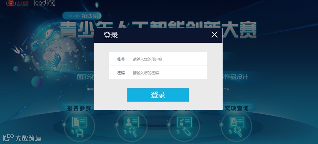 3.点击进入赛场,输入用户名和密码登陆(用户名和密码以短信的形式发送在监护人手机号码,请短信搜索查看【唛可丁学院】所发送的短信)