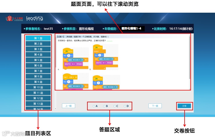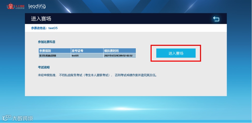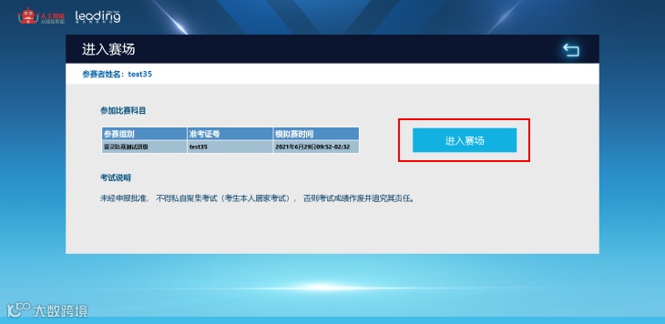 4. 进入赛场后,点击进入赛场按钮进行正式答题: