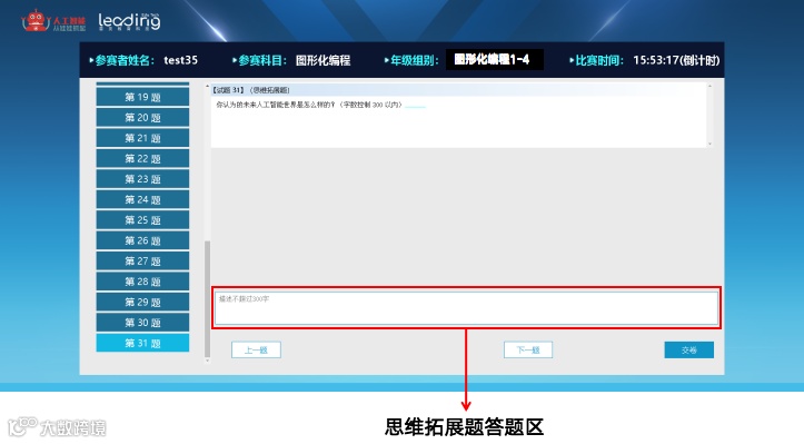答:比赛的时候开启了可复制模式,小年龄段的参赛学生可以先通过输入法开启语音转文字模式,将内容记录在文档内,再通过复制的方式移到论述题答题区。