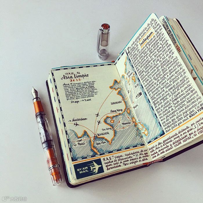 后来,他决定将生活奉献给艺术与旅行,到世界各地旅游,丰富他的手账生活。