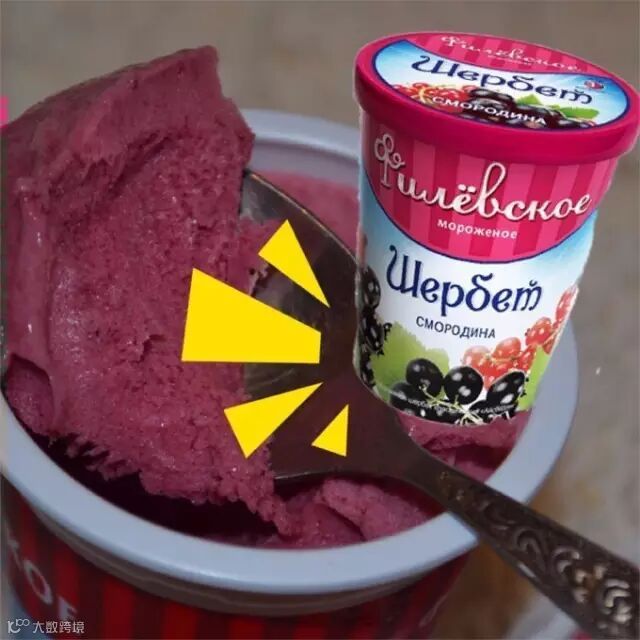 图中是смородина醋栗口味,其实也就是我们常见的浆果口味(树莓、刺李等等),大夏天里这样红红的浆果色冰淇淋光是看就要流口水了!