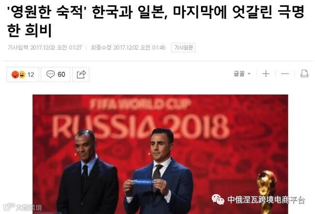 因为02年世界杯上韩国人用尽了所有力所能及的卑劣手段,最终闯进了世界杯的4强,但这个四强对于韩国人来说可以是荣誉,但是对于球迷这是世界杯上最大的耻辱。在06年世界杯的时候,我曾经说过,韩国人用光了50年的运气,世界杯上再也不可能有好运了。十年过去,这句话依旧有效。当抽签仪式进行到最后,只剩下韩国和日本的时候,谁都不想抽有德国、墨西哥和瑞典的F组,都想去波兰和哥伦比亚的H组,可首先抽出来的是韩国,韩国媒体不禁感叹:为何受伤的总是我,日本命怎么那么好。当抽中韩国的那一刻,就基本可以预告韩国在明年世界杯上的命运了。不仅提前预定了小组倒数第一,能收获一场平局就可以是举国欢庆了,而且在行程上也是很受煎熬,飞行的公里数也是很长,只能说韩国活该!