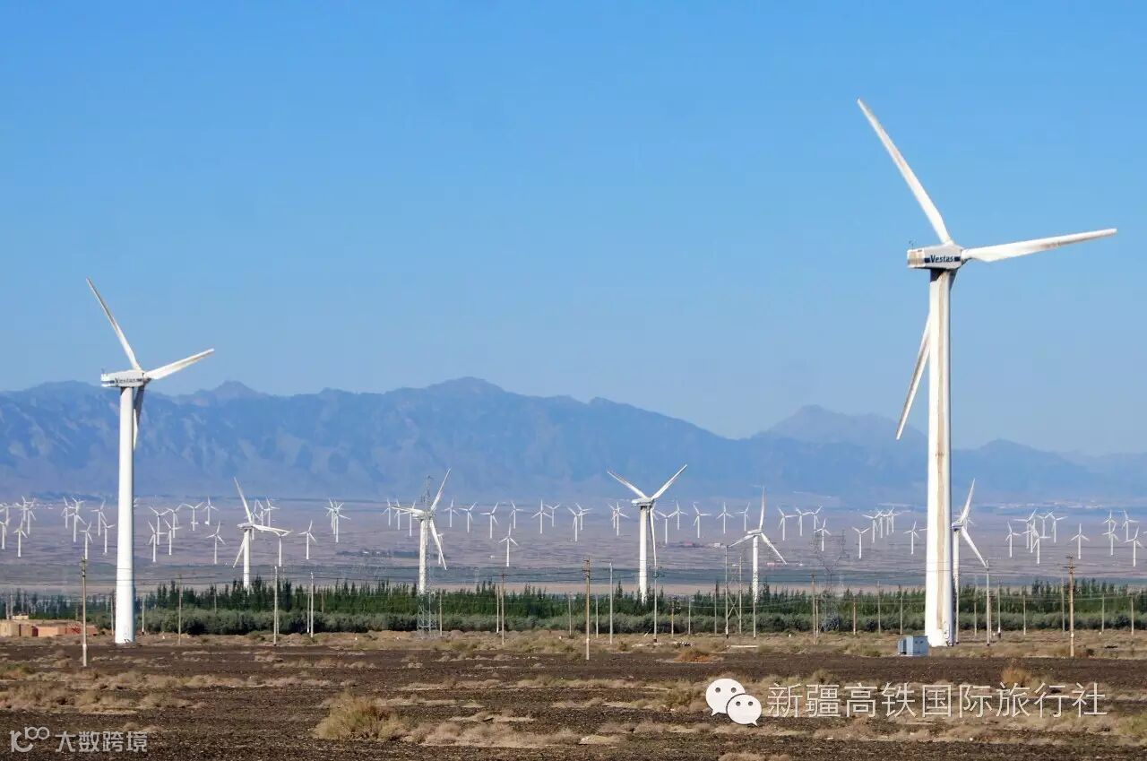 【达坂城风力发电站】上百台风力发电机擎天而立、迎风飞旋,与蓝天、白云相衬,在博格达峰清奇峻秀的背景下,在广袤的旷野之上,形成了一个蔚为壮观的风车大世界。这里就是目前我国最大的风能基地——新疆达坂城风力发电厂。