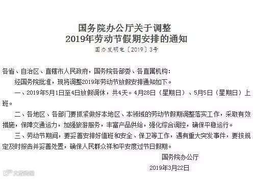 导读:“五一”假期调整为5月1日至4日 朋友!约吗?