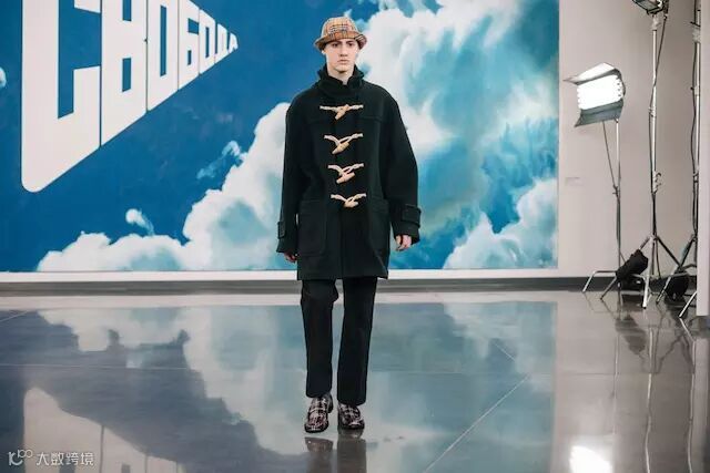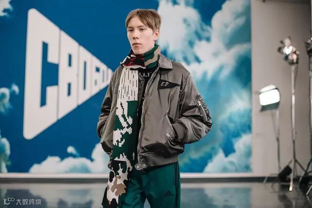 这一系列,Gosha 称其为“年轻人的新制服”,灵感部分来自 Bulatov 的艺术作品,融合军装元素:迷彩与国旗。与此同时,Gosha Rubchinskiy 在这场秀中也有着丰富的品牌合作:adidas、Burberry、Levi’s、Doc Martens。