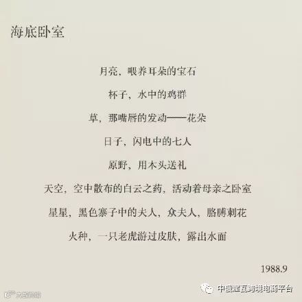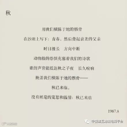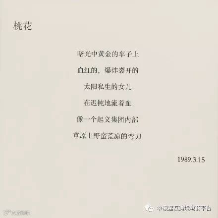 看看这一首十分特殊的诗作,第一段是:从明天起 做一个幸福的人 喂马 劈柴 周游世界 从明天起 关心粮食和蔬菜 我有一所房子 面朝大海 春暖花开 从风格上看,海子用平白如水的语言,直抒胸臆,但为什么会有极大的感染力,每个人都会被诗句中的内容深深打动,并且自然的画面感呈现在面前。海子对语言的敏感和细微的洞察,使得每一句话都是神来之笔。实际上,面朝大海 春暖花开,这么通俗的习惯用语,一般的诗人都是不敢用的,唐朝的诗人贾岛,僧推月下门,僧敲月下门,连推敲两字都费了贾岛不少神。一个略有文字功夫的人,都不敢轻易使用大俗语,譬如;春暖花开 ,姹紫嫣红等来描写春天,因为这已经是陈词滥调了!但是海子敢于用如此直白的话语作为标题,也堪比唐朝大诗人白居易了,洛阳纸贵因此传为美谈了!一开始就有一个奇异的感觉,宛如自己置身于空中楼阁,推开窗去,一阵花香扑鼻而来,温暖的阳光洒在肩上。波涛汹涌的大海,挟裹着潮湿的天空,瞬间的眼前的如此的美好。第一句:从明天起,做一个幸福的人。在某种意义上讲,也从侧面阐述了人的向上性,通常会说,明天起,我会努力学习,明天起,我会好好工作,明天起,我要天天锻炼等等,对于明天我们总有很多的假设与期许。做一个幸福的人,可不是可以设计可计划的,但偏偏又是人类共同追求的目标,也是一种获得幸福的不可能感,是一个与幸福无缘的天真假想。从中也表达了海子对幸福追求的决绝态度,没有丝毫的喘息和怠慢!再看:喂马劈柴 周游世界,何等的逍遥自在,说明对幸福的渴望和内容!第二节:从明天起 和每个亲人通信 告诉他们我的幸福 那幸福的闪电告诉我的 我将告诉每一个人 海子这一段白描,直接打破了诗意和非诗意的界限,让每个人都觉得浅显易懂,幸福是每个人的追求,同时幸福如同快乐,是多么值得分享,奔走相告,让全世界的人都知道,同时幸福又是那么突然和猝及防,如同闪电,说来就来了。同时幸福又是无比的光芒四射,无论白天黑夜,是注定亮煞你的眼。闪电同时也有细节的部分,也就是细到闪电般的情节,海子都可以轻松表达出来,这同时需要极高的天赋!第三节:给每一条河每座山取一个温暖的名字 陌生人我也要为你祝福 愿你有一个灿烂的前程 愿你有情人终成眷属 愿你在尘世获得幸福 我只愿面朝大海 春暖花开 最后一节又回到了题眼,呼应了自身的追求,在山河广阔的天地,不知有多少河流山川,诗人海子不厌其烦的命名,而且的温暖的命名,这该需要多少的耐心。对于陌生人,无论是中国的还是外国的,是亲友还是陌生的,所有的一切人,都给你连绵不绝的祝福,显示了诗人海子多大的气魄格局和胸怀抱负。就仅仅凭这一句,我觉得完全可以媲美世界上任何一个伟大的诗人或者是作家,如普希金,泰戈尔,歌德,希梅内斯,艾略特,米沃什,莎士比亚等等。祝福什么内容呢?灿烂的前程和有情人同时获得,这才是尘世的幸福。而诗人的最后,又回归自己的追寻,面朝大海,春暖花开!