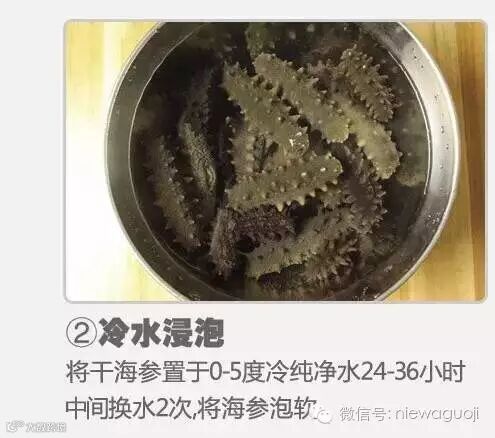 由于淡干海参系低盐产品,从抑菌及提高发制率的角度出发,建议全程使用纯净水发制。