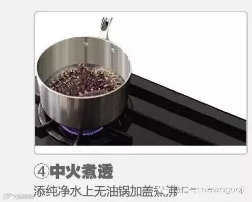 洗净后添纯净水上无油锅加盖大火煮沸,然后再调至中小火煮40-60分钟。