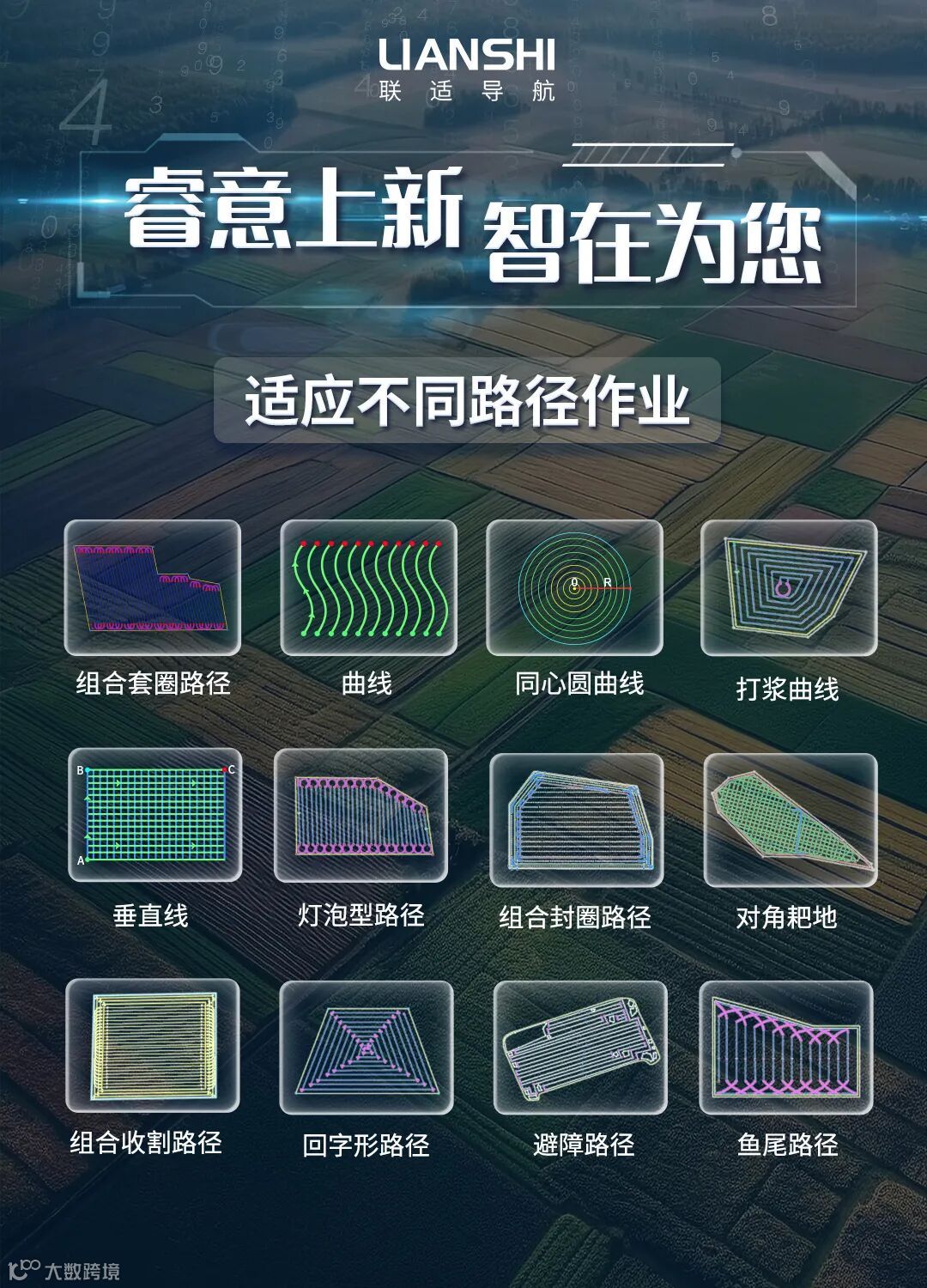 适应更多不同路径。除常规的直线、曲线、对角耙地、圆曲线、回字形路径等十余种不同作业路径之外,增加了不规则耙地、A+导航线、ABC直线、LastPath、定距直线等路径。