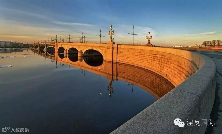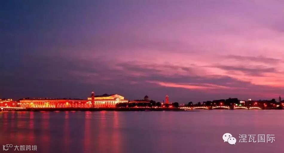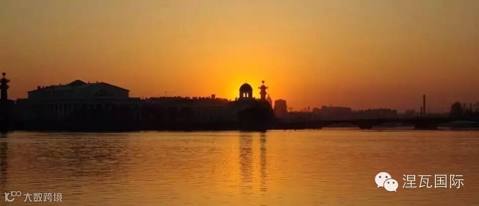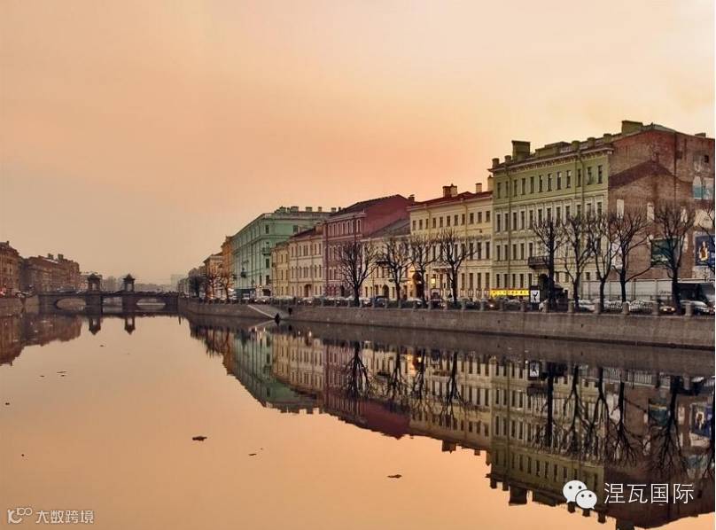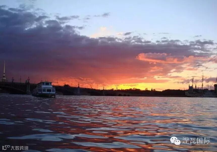 此时的涅瓦河最是迷人,披上霞光,好像贪杯的少女,微微醉红了脸,那么柔和静谧,纯洁美好。悠悠的涅瓦河流水,涅瓦河两岸的房屋、行人、花草树木、停下来的鸟……所有的一切,都是美的。