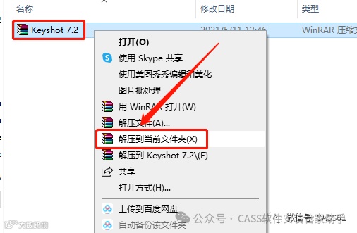 1.下载KeyShot软件安装包,鼠标右击压缩包,选择【解压到当前文件夹】。