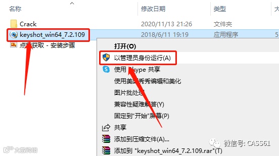 4.鼠标右击【keyshot_win64_7.2.109】安装程序,选择【以管理员身份运行】。