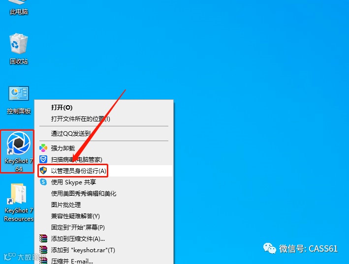 23.在桌面上鼠标右击KeyShot软件图标,选择【以管理员身份运行】。