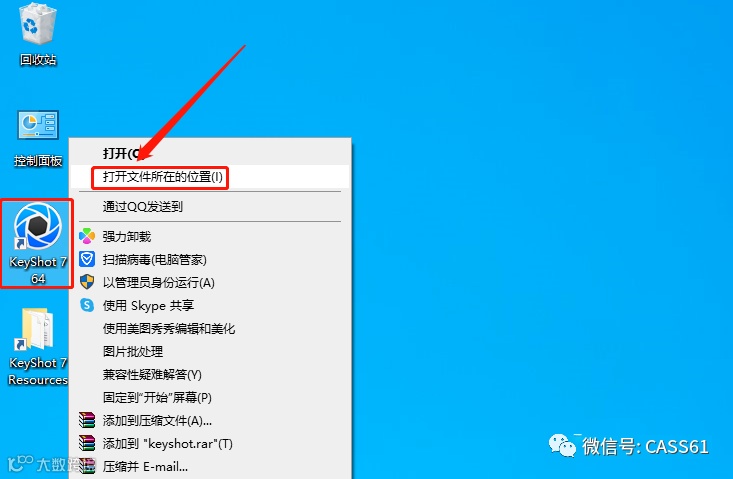14.在桌面上鼠标右击KeyShot软件图标,选择【打开文件所在的位置】。
