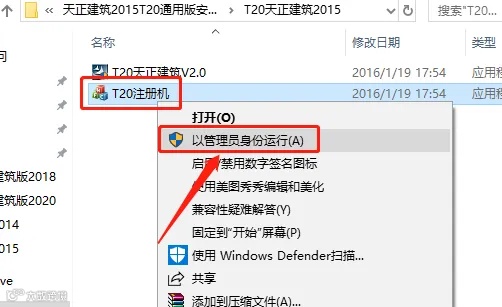 10.返回到解压的安装包文件夹,鼠标右击【T20注册机】,选择【以管理员身份运行】。