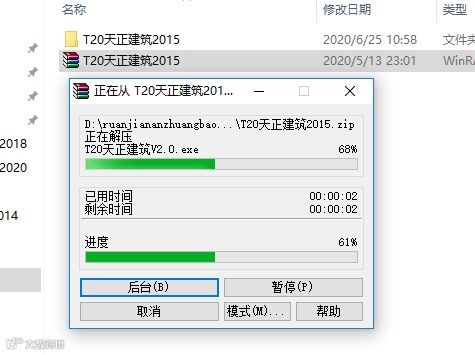 2.软件压缩包【T20天正建筑 2015】解压中。