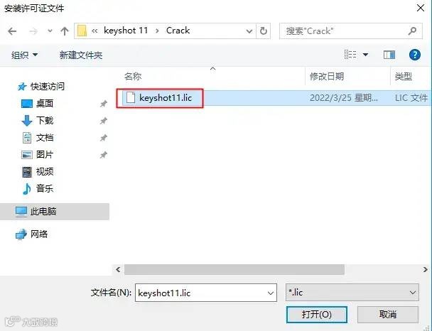 11,选择之前生成的KeyShot11.ilc文件,点击打开,最后点击完成即可