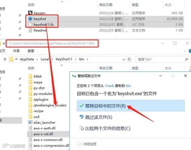 8,将生成的.ilc文件和keyshot.exe复制到软件的安装路径下替换, 默认路径:C:\Users\Administrator\AppData\Local\KeyShot11\bin
