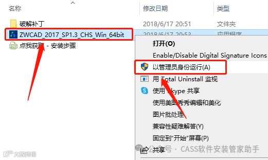 4.鼠标右击【ZWCAD_2017_SP1.3_CHS_Win_64bit】安装程序,选择【以管理员身份运行】。