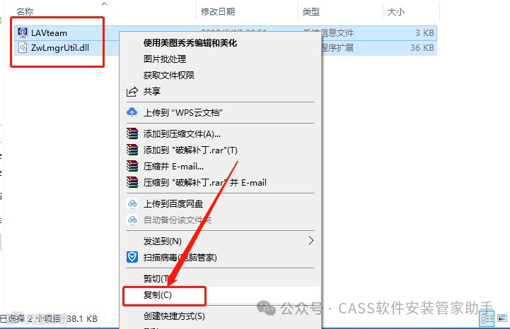 13.全部选中文件夹中的两个文件,鼠标右击选择【复制】。