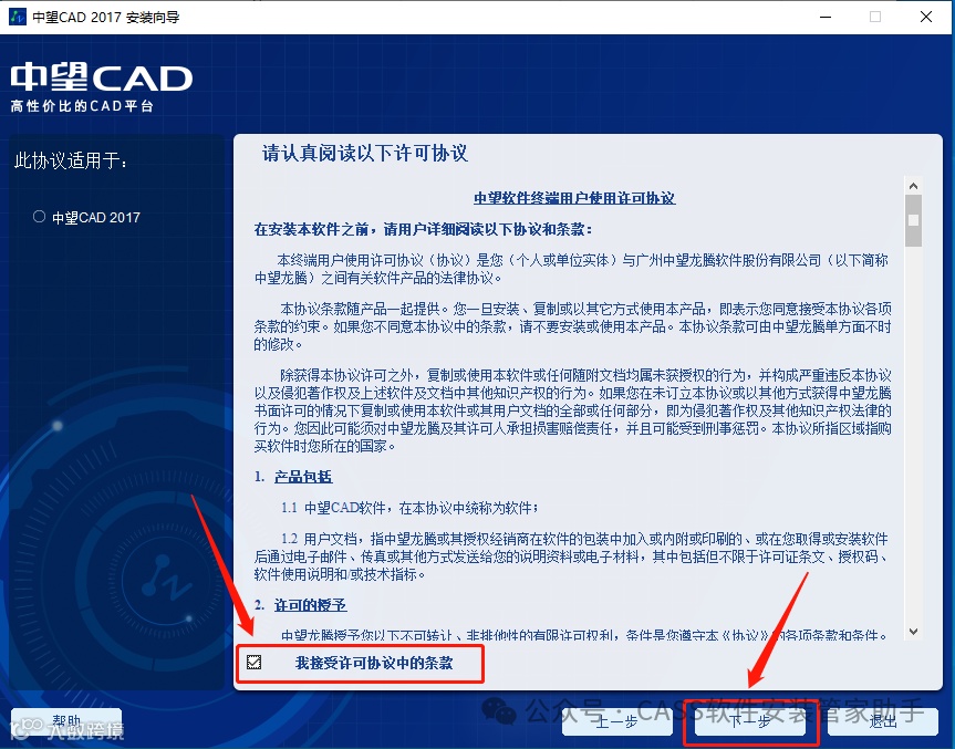 7.勾选【我接受许可协议中的条款】,然后点击【下一步】。