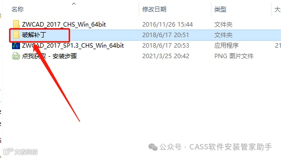 12.返回到解压的【ZWCAD 专业版2017】文件夹,然后打开【破解补丁】文件夹。