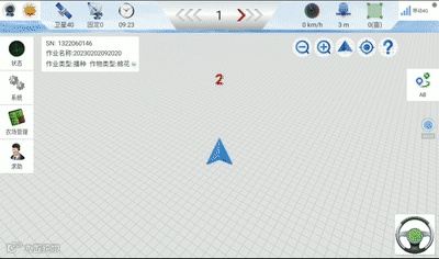重新安装农具时会导致接行变化,此时只需将车辆对准划行线,即可一键校准接行,解决了人工测量不准、不会计算的问题。
