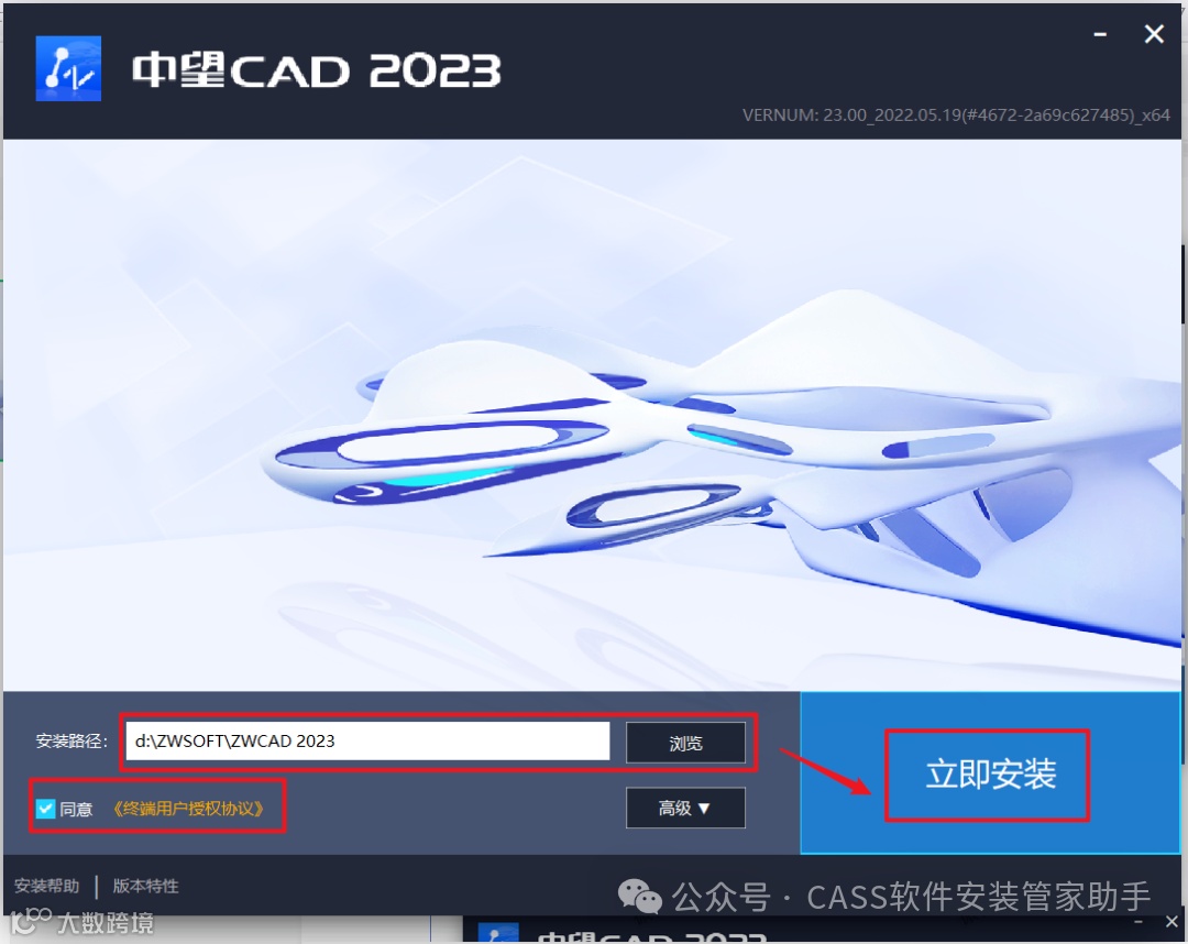 4.点击浏览,修改安装位置.勾选同意协议,点击立即安装。