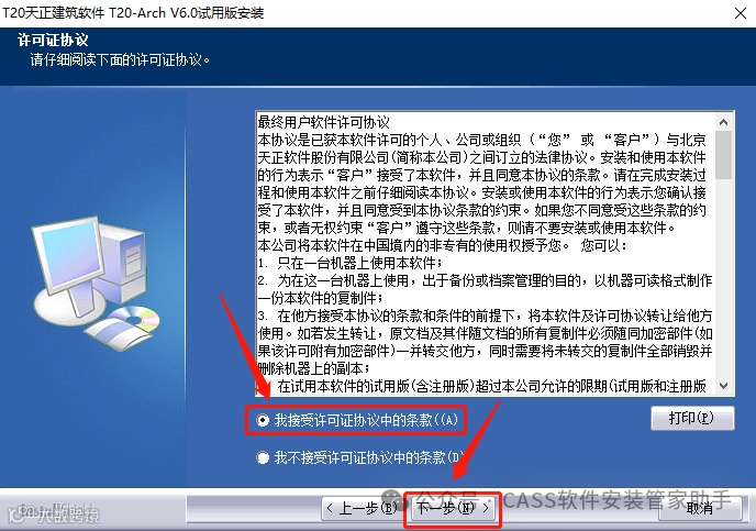 4.选择【我接受许可条款】,点击【下一步】。