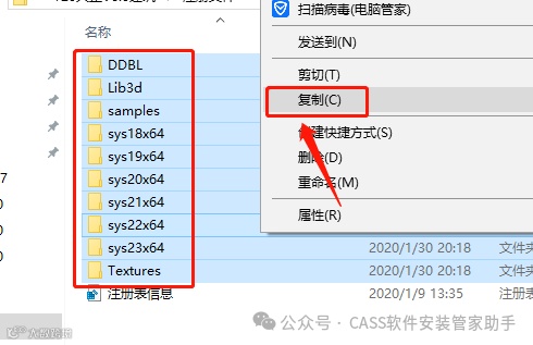 13.继续返回到解压的安装包文件夹,全部选中如下图所示的文件,鼠标右击选择【复制】。
