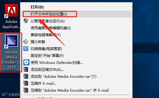 15.鼠标右击【Adobe ME CC 2015】图标选择【打开文件所在的位置】。