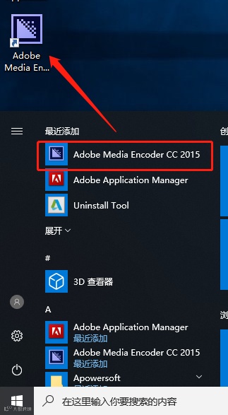 13.开始菜单JIANG 【Adobe Media Encoder CC 2015】用鼠标往桌面拖动即可创建桌面快捷方式。