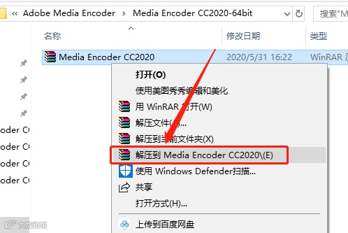 1.下载【ME 2020】软件安装包,鼠标右击【ME 2020】压缩包选择【解压到Media Encoder 2020】。