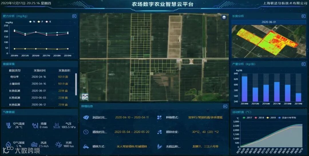 数字农业智慧云平台,立足于农业生产耕种管收全环节的大数据采集,包括农业气候、土壤养分、作物长势、产量估测、智慧育秧、变量施肥、变量植保、综合水管理等各个关节,基于专家系统的分析决策,为农业生产提供科学的管理依据。