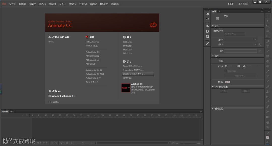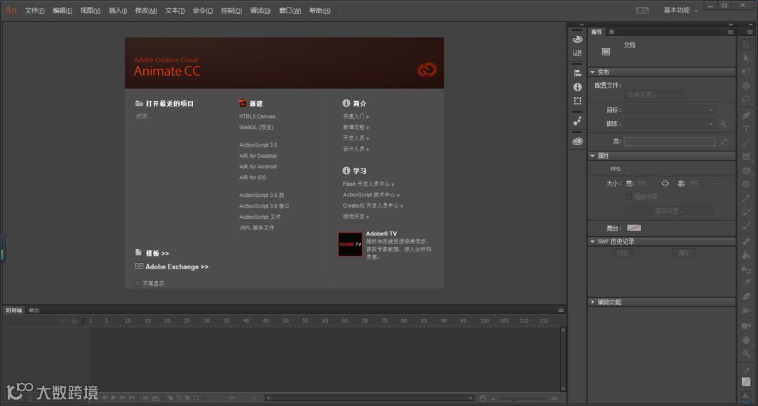 Adobe Animate 是由原Adobe FlashProfessional CC更名得来,简写为“An CC ”。Adobe Animate 支持Flash SWF、AIR格式的同时,还支持了HTML5、WebGL等,新版本更是增加了新向导,动画时间轴新增了多个增强功能。