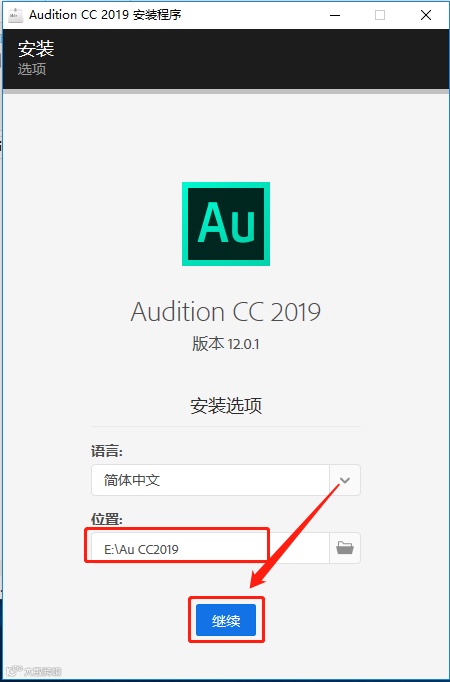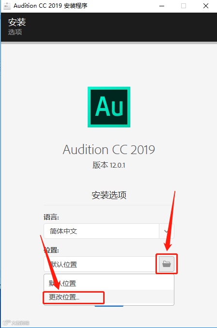 5.点击小文件夹图标,点击【更改位置】设置【Audition CC2019】安装路径。