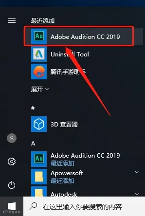 9.点击开始菜单,打开运行【Adobe Audition 2019】。