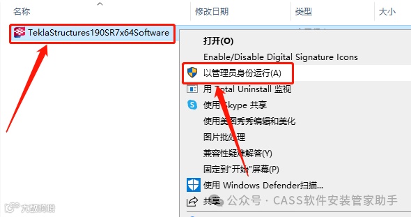 6.鼠标右击【TeklaStructures……】安装程序,选择【以管理员身份运行】。