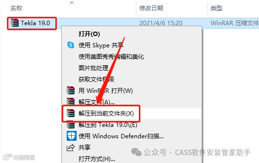 1.下载并选中【Tekla 19.0】软件安装包,鼠标右击压缩包选择【解压到当前文件夹 】。