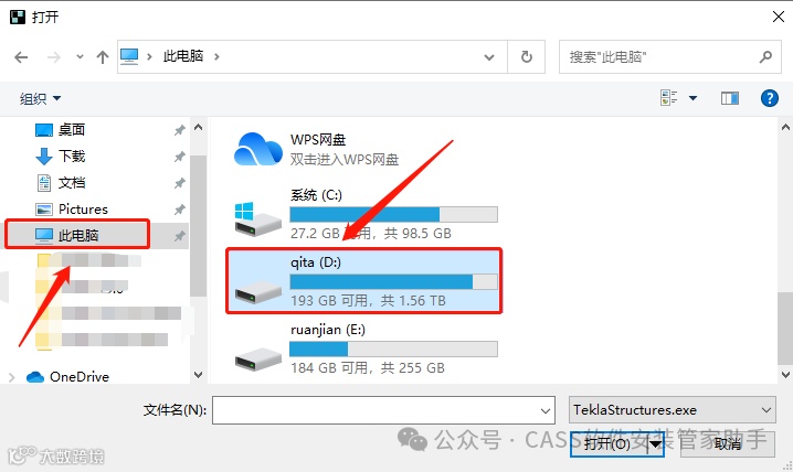 41.找到软件的安装路径(参考第12步骤),打开D盘。