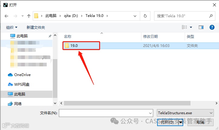 4.根据自己的操作系统选择打开对应的文件夹,如果是64位操作系统,打开【Tekla19.0-64位】文件夹。