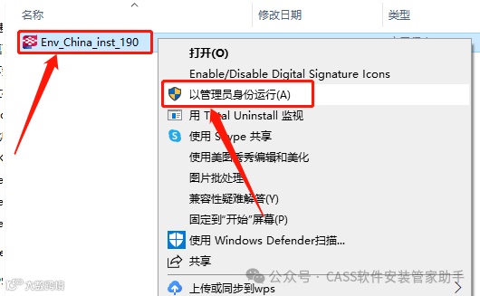 19.鼠标右击【Env_China_inst_190】程序,选择【以管理员身份运行】。