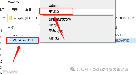 22.在打开的【WinsCard】文件夹中,鼠标右击【WinsCard.DLL】文件,选择【复制】。