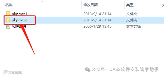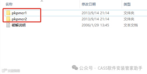 16.里面有两份pkpmcr破解包,针对不同用户一个包无法破解,所以两种方案一起运用。先使用“pkpmcr1”进行破解,再使用“pkpmcr2”进行破解。