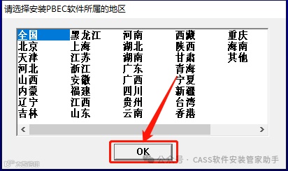 12.选择所属地区,可以直接选择全国,点击【OK】。