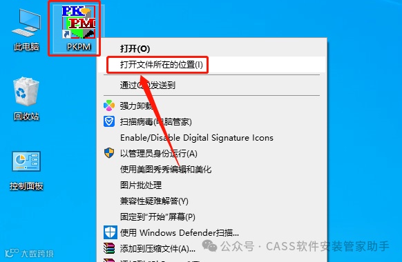 23.桌面找到PKPM软件图标,鼠标右击选择【打开文件所在的位置】。