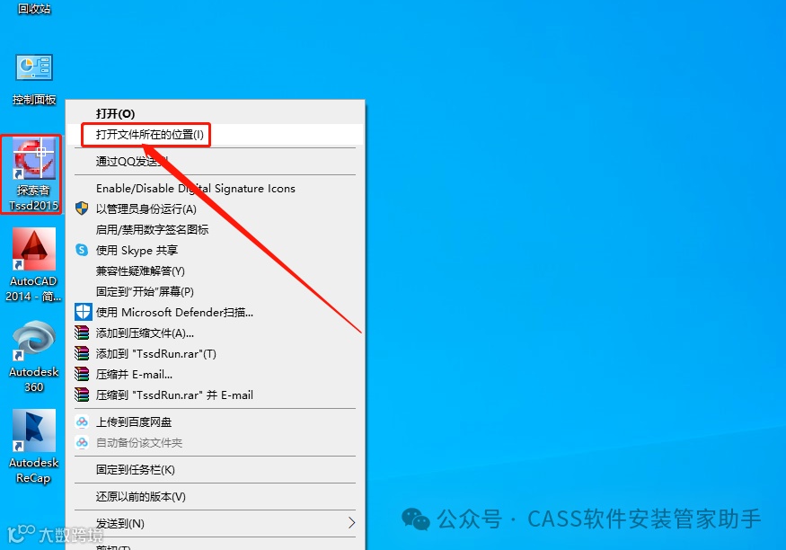 16.桌面上找到TSSD 2015软件图标,鼠标右击选择【打开文件所在的位置】。